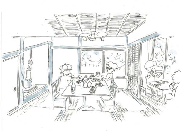 小さなお庭もあって、このまま投宿したいような佇まいである。引き戸をガラガラと開けると、素敵な女性に迎えられた。池内かおりさん、有高ひとみさん。