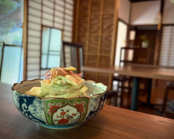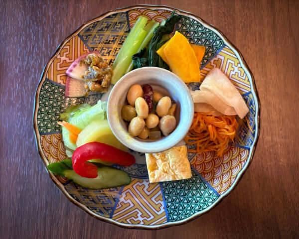 この御膳には、季節の惣菜盛り合わせというのがついてくる。これが「惣菜」と謳っているが、その実、おつまみセットであることを私は知っていた。その日の惣菜セットも、やはり期待を上回る、実力派の肴が盛られていたのであった。万華鏡のようなそれは、豆、にんじん、生でいけるかぼちゃ=コリンキー、きゅうり、だし巻き玉子……。鎌倉野菜を中心に色とりどりの肴で一杯のその皿は、迷い箸で竜巻がおこりそうなくらい充実している。それぞれの材料のいちばん旨いところ引きだそうという粋な味付けで、味噌や酢、塩に出汁と上手に使い分けている。結局、この惣菜のセットで二合空けてしまった。