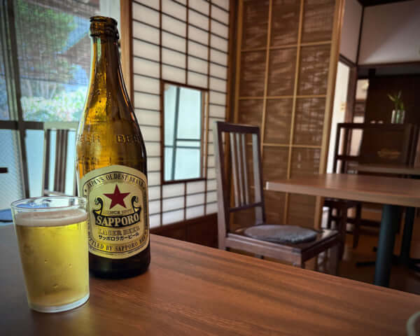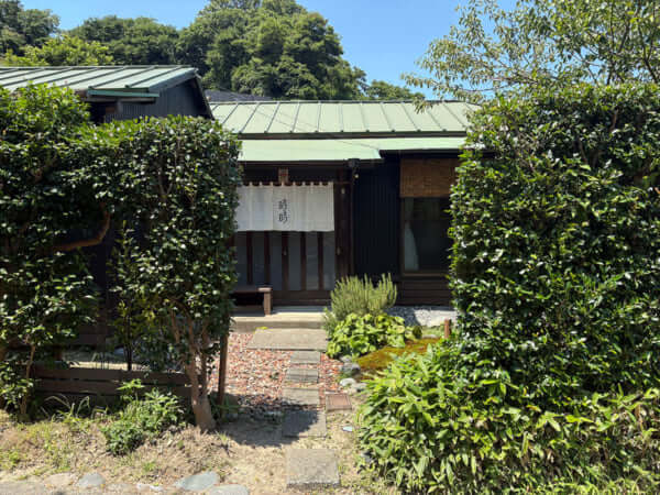 水分補給しながらとぼとぼと歩きつづけること、さらに数分、道は突然開けた場所にぶつかり、そこが鎌倉宮である。お参りしたいところだが、今日はすでにへろへろ、このまま即身仏になりそうだったので、一礼して道を進む。鎌倉宮の入り口のところで左へ曲がり、細い道をずんずん進む。細い道沿いに落ち着いた家並みがつづく。すこしあおぎ見れば山。サングラスとキャスケット姿の、再結成したお笑いコンビみたいな二人が黙って、こんなに風情のある道を歩く。そして脇道を一本入ったところに、その店はある。