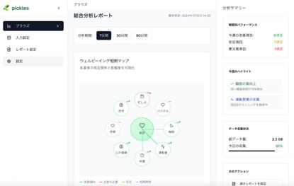 もちろん、日誌やSNSの投稿のように自ら記述した文章と、睡眠時間や歩数といった自動的に記録されるデータとでは、性質が大きく異なる。後者は機械が一方的に分析を行うものである。Picklesは、センサーやコンピュータが自動的に収集するデータを拾い、意味づけをソフトウェアに委ねるというよりは、人が自らテキストを書き、書いた内容の意味づけや価値の発見を行うプロセスに寄り添う役割を果たすものにしたい。