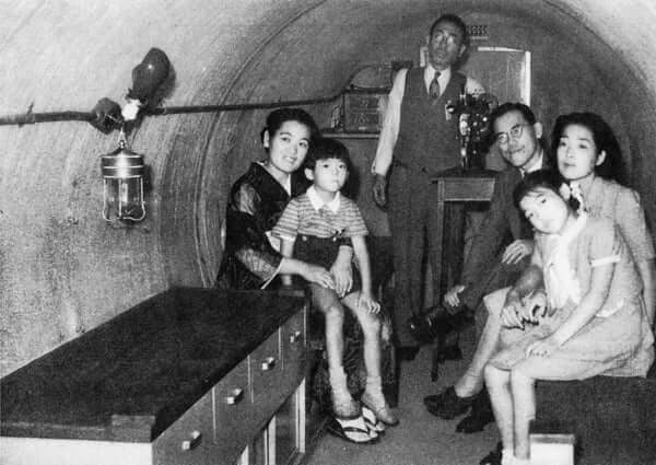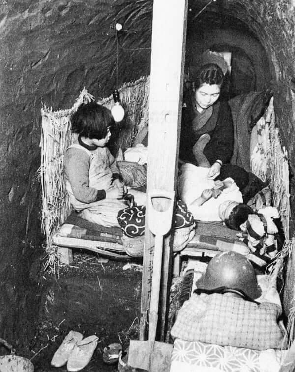 周知のように、日本は1941年から対米戦争へふみきった。翌年からは米軍の空襲をうけ、くるしめられている。多くの都市部では、住民たちが防空壕をこしらえた。地下にもうけた退避の場へ、爆撃時にはもぐりこんでいる。