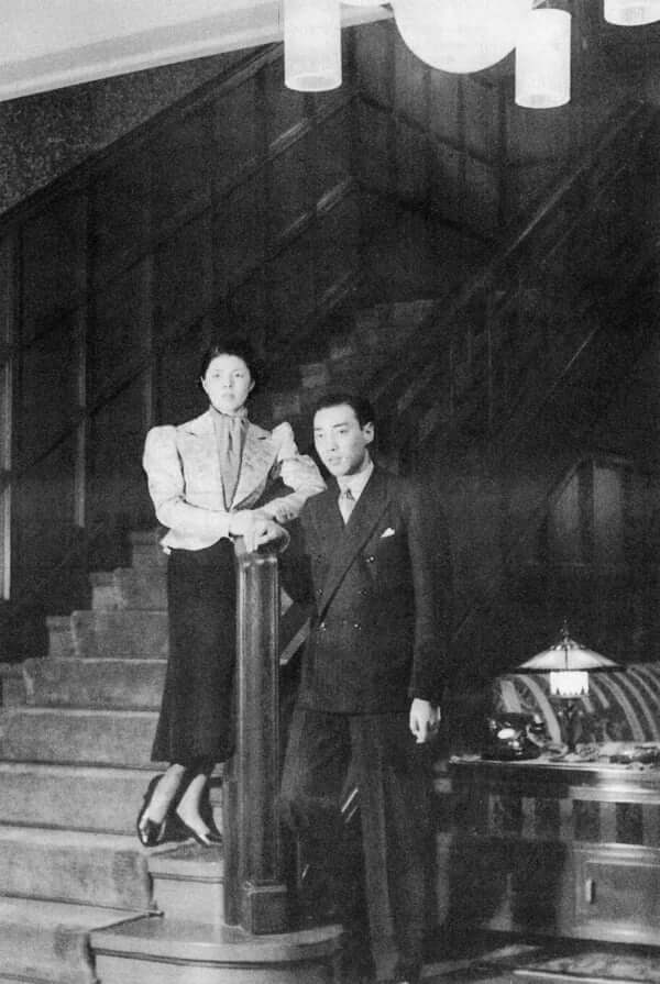 図1:四条隆徳と夫人。昭和12年8月(『写真でよむ昭和モダンの風景 1935年‐1940年』30ページ、津金澤聰廣監修、柏書房、2006年5月25日発行)