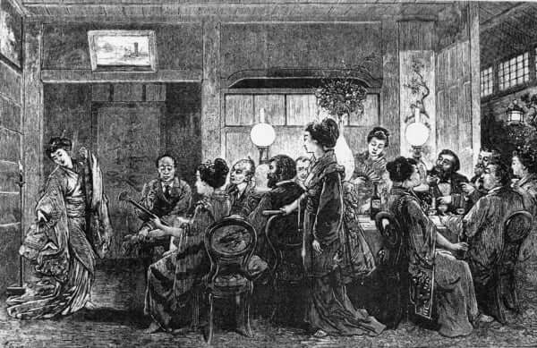 図5を見てほしい。日本のさる晩餐会をえがいた挿絵である。『イラストレイテッド・ロンドン・ニューズ』に掲載された(1874年1月3日号)。