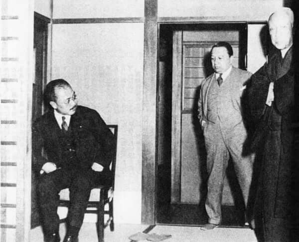 そんな幣原と内閣の調整へ、元老の西園寺公望(さいおんじきんもち)がのりだした。だが、ことはうまくすすまない。おりあいがつかず、けっきょく失敗する。図6は、そんな幣原が、東京の西園寺本邸を訪問した時の写真である。これから、うちあわせにはいろうとする一瞬を、とらえている。