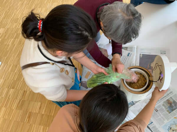 わたしたちはこの木桶版Nukabotを、2019年4月にヒラクさんが東京で開催した展示(*2)で初めて公開した。来場者の反応は、ミラノの時とは明らかに違っていた。それは糠床が日本人にとって身近なものだからという理由だけではない。