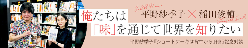 衝撃のデビュー作『生まれた時からアルデンテ』から10年、平野紗季子さんのエッセイ集『ショートケーキは背中から』(新潮社)が2024年8月に発売されました。その刊行を記念し、青山ブックセンターで行われたトークイベントを記事化いたしました。ゲストに迎えるは、平野さんが「味のオーソリティ」と呼ぶ“食のパイセン”稲田俊輔さん。気心知れたふたりが、炊き合わせやちくわぶといった料理や食材から、「読書食べ」や「狭間のスパゲティ」といった新概念まで、食について縦横無尽に語ります。